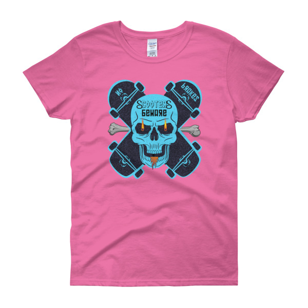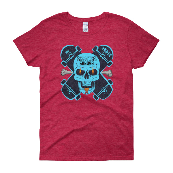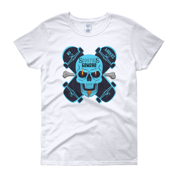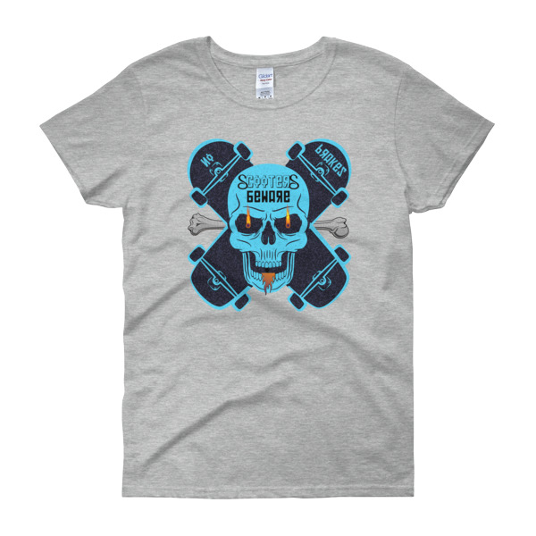 For the days when all the scooter kids are ignoring park etiquette and the parents are out of sight or just don't seem to care. Let this T shirt speak your mind and broadcast the message, Scooters Beware. A heavy cotton, classic fit ladies scoop neck t-shirt.